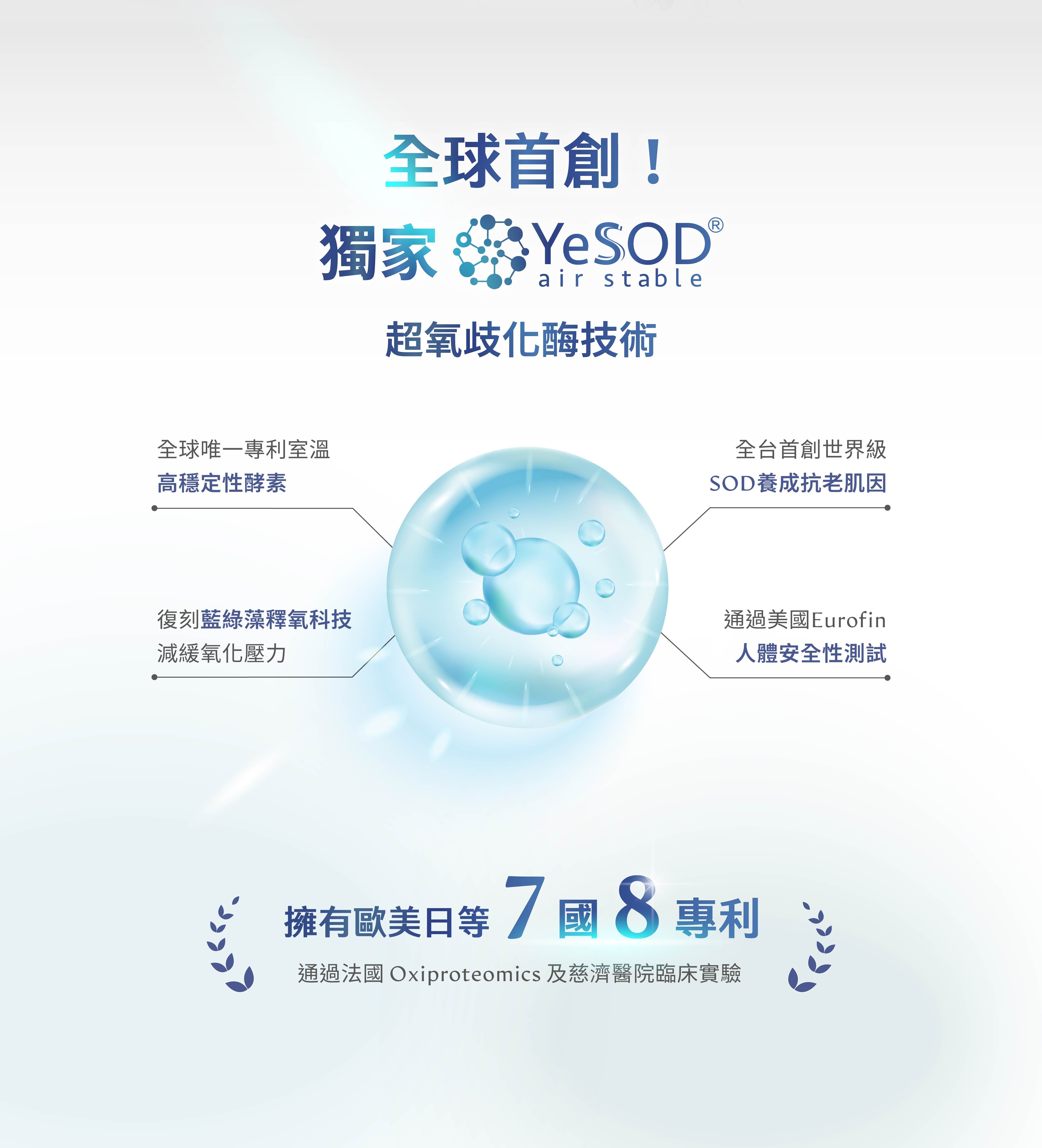 +全球8項專利研發頂尖抗氧酵素SOD(超氧化物岐化酶) 室溫高活性穩定技術 全面高效抗老防護
